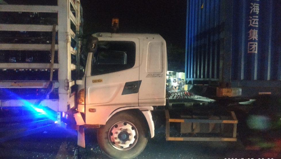 Reportika.co.id || Bekasi – Sebuah Kecelakaan Lalu-lintas yang melibatkan tiga unit kendaraan besar pengangkut peti kemas, terjadi di Jl. Raya rengas bandung, Cikarang Timur, tepat di depan PT. Platinum Keramik. pada, Rabu, 27 Juli 2022, sekira pukul 21.30 WIB.