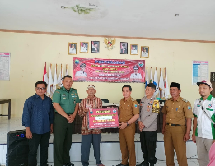 Reportika.co.id || Sragi, Lampung Selatan – 23 keluarga penerima manfaat (KPM) Desa Sumbersari, Kecamatan Sragi Kabupaten Lampung Selatan, menerima bantuan tunai langsung (BLT DD) tahap 3, periode bulan, Juli, Agustus, september 2023.