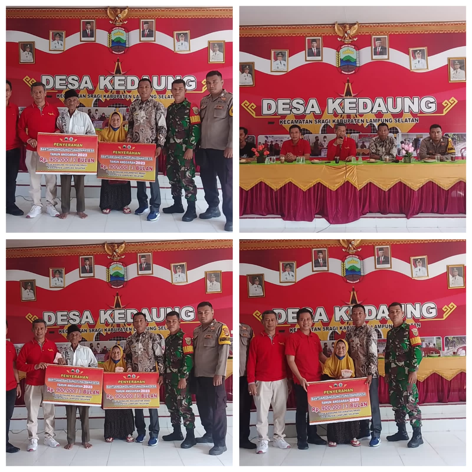 Reportika.co.id || Sragi, Lampung Selatan – Pemdes Kedaung kecamatan Sragi Kabupaten Lampung Selatan (Lamsel) salurkan kepada 32 Keluarga Penerima Manfaat (KPM) Bantuan Langsung Tunai Dana Desa (BLT-DD) tahap 2 sebesar Rp 900 ribu tahun 2023, di Balai Desa Kedaung pada Jumat (26/5/2023).
