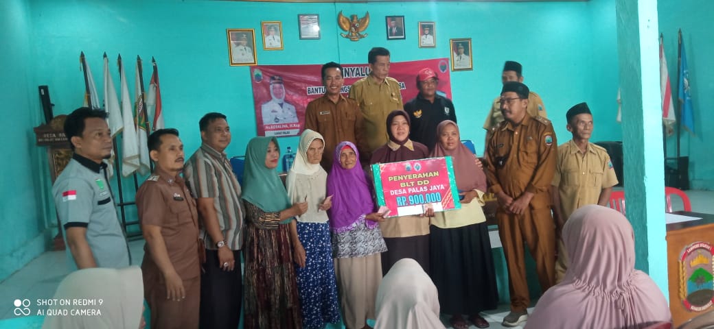 Turut hadir dalam kegiatan pembagian BLT-DD Desa Palas Jaya Camat Palas Ns.Rosalina M.kep, Sekcam Palas Suyadi, pendamping Desa Sopiyan, serta masyarakat Keluarga Penerima Manfaat (KPM)