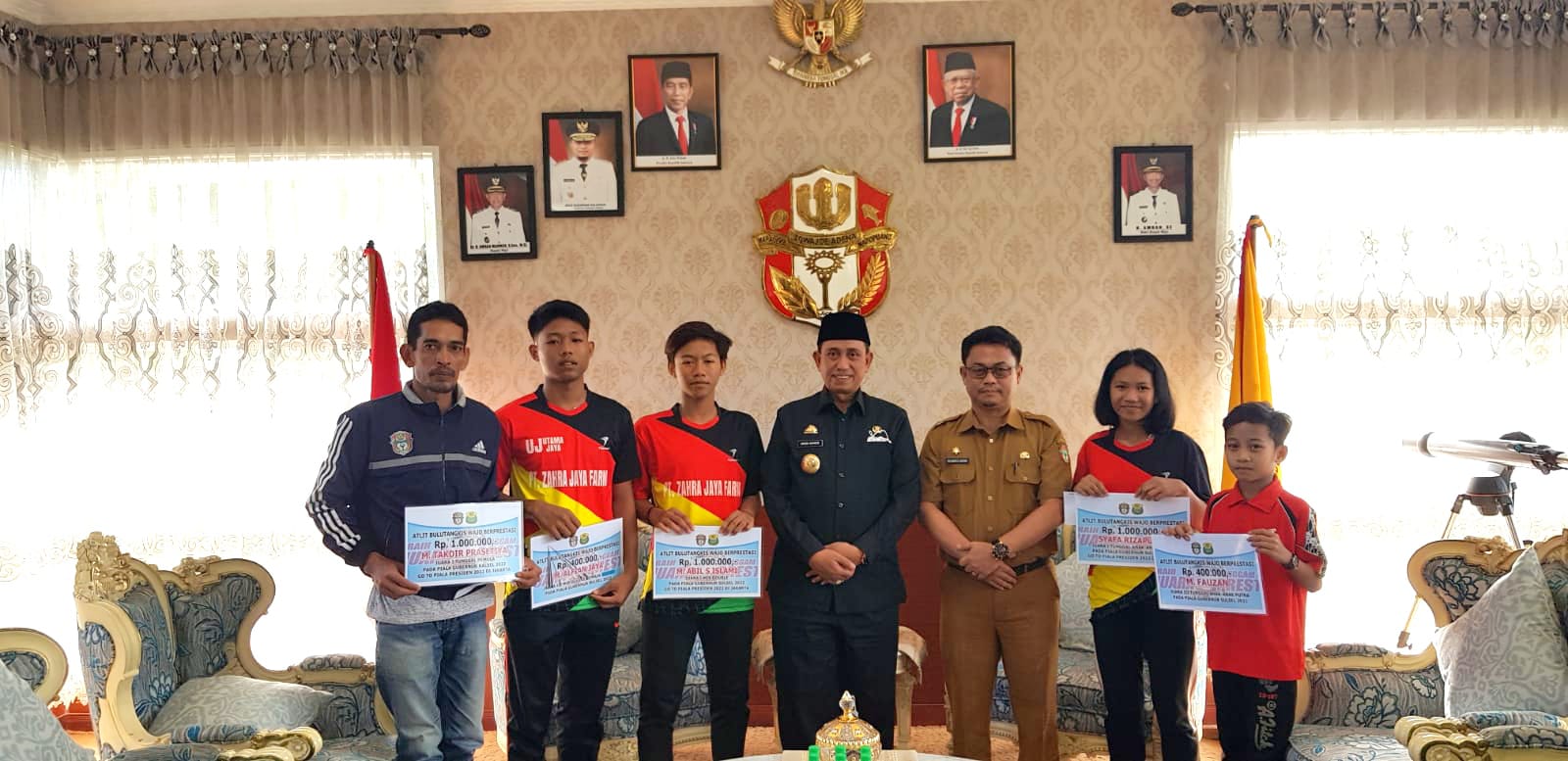 Penyerahan bonus dan uang pembinaan itu berlangsung di ruang kerjanya di kantor bupati saat menerima para atlet yang juara di beberapa kategori, Selasa (19/7/22).