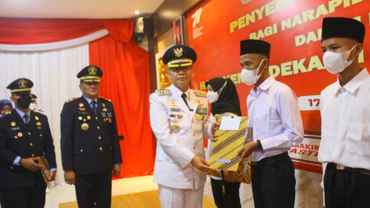 Penjabat (Pj) Bupati Bekasi, Dani Ramdan menyerahkan langsung Surat Keputusan Remisi Umum 17 Agustus Tahun 2022 kepada perwakilan Narapidana dan Anak