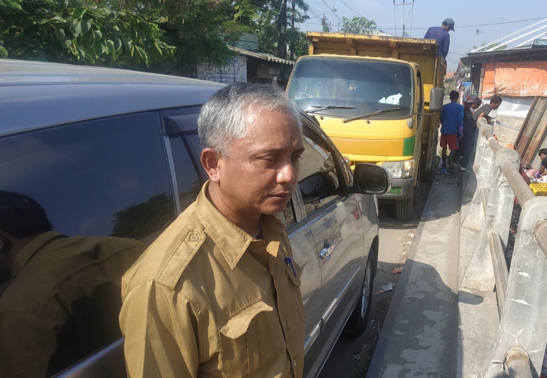 Senin pagi, 1 Agustus 2022 UPTD Wilayah IV Dinas Lingkungan Hidup dan Kebersihan Kabupaten Bekasi, mengangkut sampah di Bantaran Kali Cikarang, di Kampung Jagal Desa Karang Asih Kecamatan Cikarang Utara.