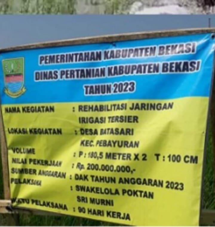 Reportika.co.id || Kabupaten Bekasi – Adanya lanjutan pekerjaan yang terbengkalai dan tidak selesai kegiatan pekerjaan Rehabilitasi Jaringan Irigasi Tersier yang berlokasi di Kampung Pesiut, Desa Bantarsari, Kecamatan Pebayuran, Kabupaten Bekasi,menjadi dugaan adanya kongkalingkong dan main mata antara PPK Dinas pertanian dan Kelompok Tani Sri Murni.