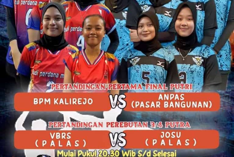 Anpas vs BPM Kalirejo perebutan juara 1 dan 2 (Putri) Josu vs VBRS Ringin Sari perebutan juara 3 dan 4. (Putra)