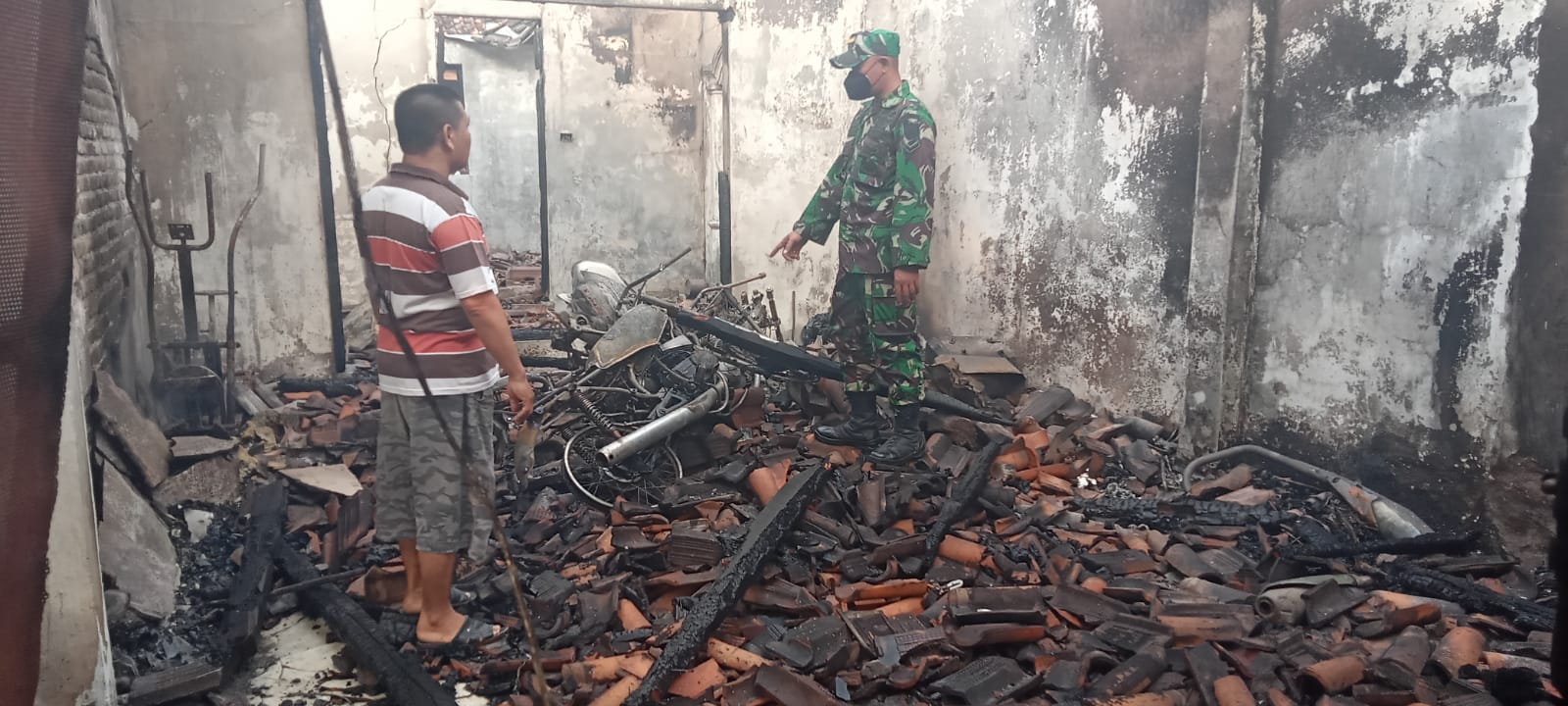 Babinsa Baktirasa dan aparatur Pemerintah dan instansi terkait lainnya, warga masyarakat melakukan pembersihan lokasi kebakaran. Kerugian ditafsir Rp 800 juta