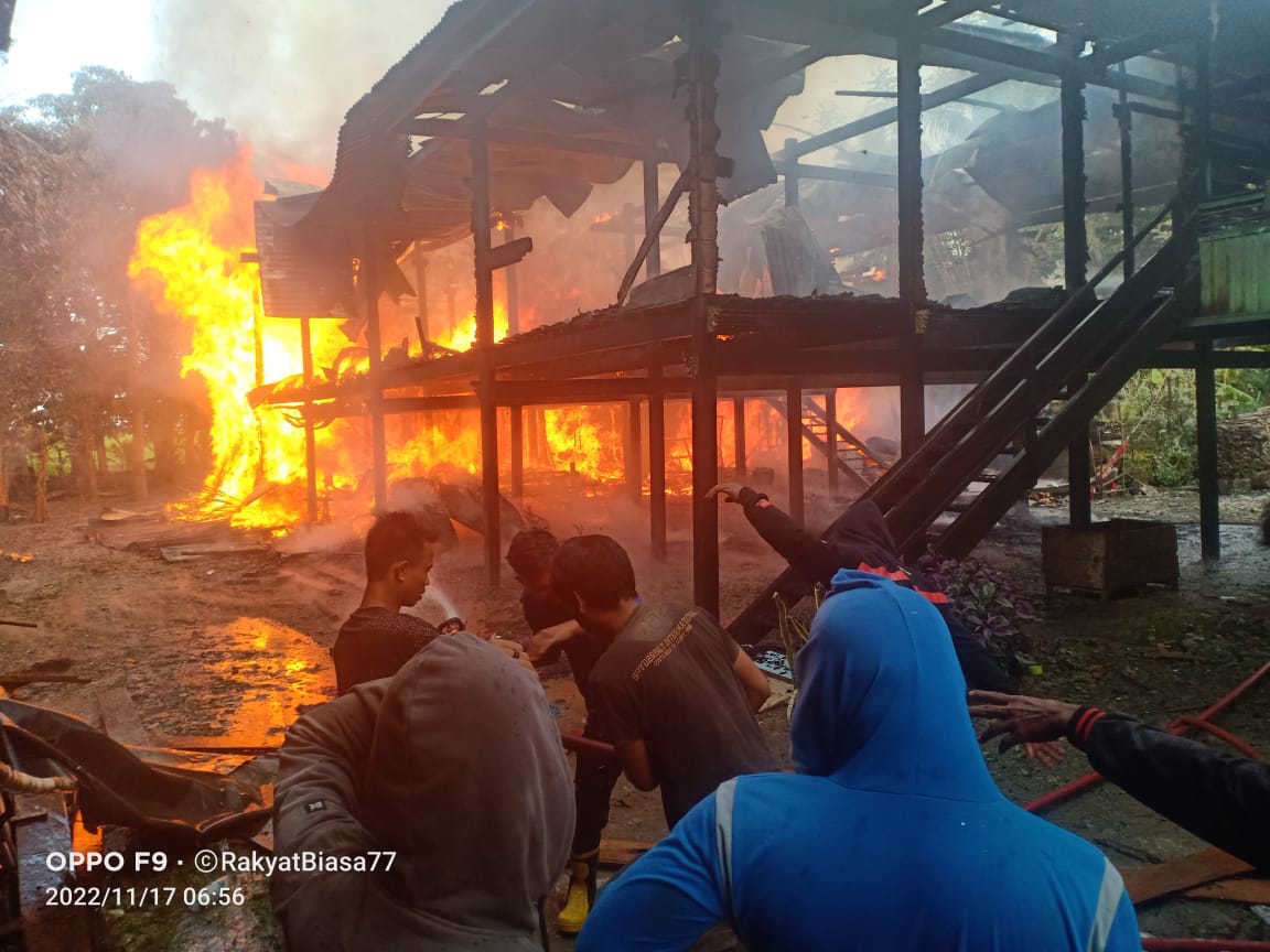 Reportika.co.id || Wajo, Sulsel – Pagi-pagi si Jago Merah lalap dan hanguskan satu unit rumah panggung di Dusun Wattang, Desa Leppangeng Kecamatan Belawa, Kabupaten Wajo,Sulawesi Selatan,Kamis 17/11/2022, sekitar pukul 06.30 WITA.