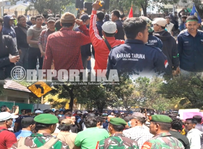 Kemudian disisi lain, ditempat yang sama, ada pula massa aksi yang menolak atas penyampaian aspirasi dari Karang Taruna, mendukung terkait kebijakan dari PT. Global Dimensi Metalindo yang berdiri di tengah-tengah wilayah tempat tinggal masyarakat Desa Karang Baru.