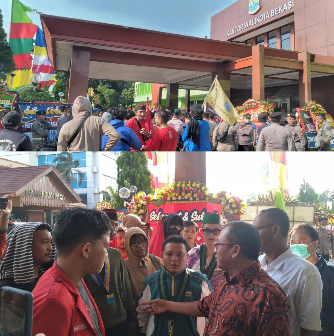 Reportika.co.id || Bekasi – Puluhan Aliansi mahasiswa Kota Bekasi (Ambisi) melancarkan aksi demonstrasi di halaman Kantor Wali Kota Bekasi, Mereka menuntut agar Pelaksana Tugas (Plt) Wali Kota Bekasi untuk segera merealisasikan janjinya.