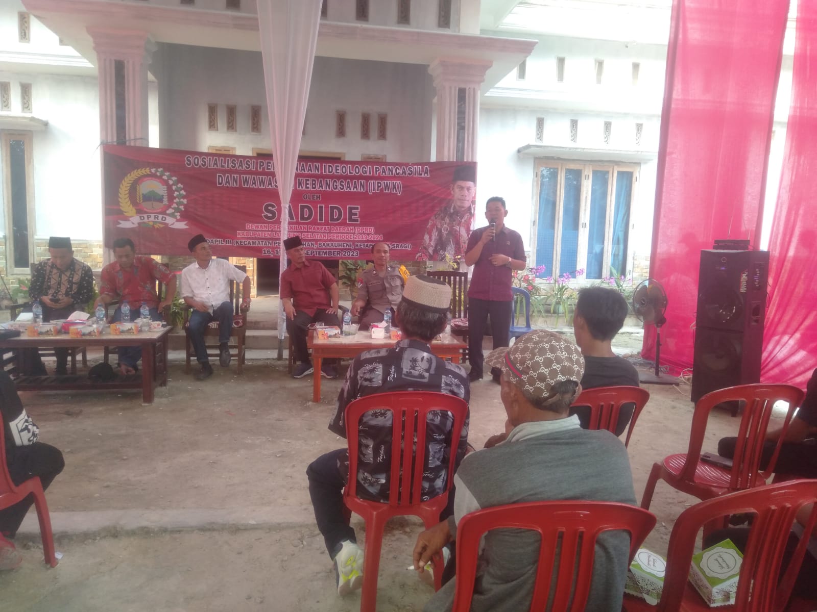 Reportika.co.id || Palas, Lampung Selatan – Anggota DPRD Kabupaten Lampung Selatan Sadide dari Fraksi PDI-P Kabupaten Lampung Selatan, melakukan Sosialisasi Pembinaan Ideologi Pancasila dan wawasan Kebangsaan (IPWK) di 2 Desa di Kecamatan Palas Kabupaten Lampung Selatan yakni Desa Sukabakti dan Desa Bumiasih.