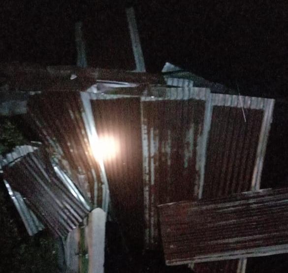 “Bahkan sempat mengenai kabel listrik yang bertegangan tinggi milik PLN yang mengakibatkan penerangan mati total selama empat jam, menunggu petugas dari PLN untuk menurunkan seng rumah yg tersangkut di kabel listrik,” Terangnya