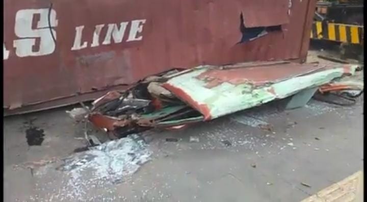 Reportika.co.id || Kota Bekasi – Satu unit angkutan umum jenis angkot (angkutan kota) nampak ringsek tak berbentuk, usai tertimpah mobil jenis kontainer yang ambruk di depan Pasar Bantargebang pada Rabu, 17/05/2023 Sore sekira Jam 17.00 WIB, Kota Bekasi.