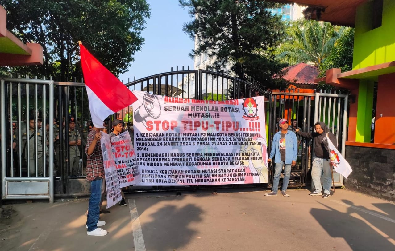 Dengan temuan tersebut terbukti Pj.Walikota Bekasi menjalankan kebijakan tanpa adanya dasar hukum, terlihat seperti atas keinginan oknum dan like and dislike yang berdampak pada kegaduhan yang terjadi di Kota Bekasi. Lalu Berdasarkan surat edaran Kemendagri RI NG 100.2.1.3/1575/SJ tanggal 29 Maret 2024 tentang kewenangan Repala Daerah pada daerah yang melaksanakan pilkada dalam aspek kepegawaian dan pasal 71 ayat 2 UU No. 10 Tahun 2016 “bahwa Gubernur atau Wakil Gubernur, Bupati atau Woakil Bupati, dan Walikota atau Wakil Walikota dilarang melakukan penggantian pejabat 6 (enam) bulan sebelum tanggal penetapan pasangan calon sampai dengan akhir masa jabatan kecuali mendapat persetujuan tertulis dari Menteri Dalam Negeri” Berdasarkan hal-hal diatas maka kami dari Aliansi Rakyat Bekasi menuntut PJ.Walikota harus mundur dari jabatannya dengan dasar :