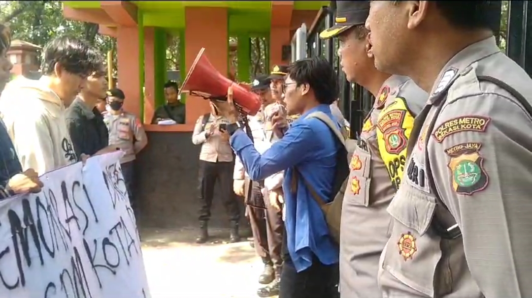 Reportika || Kab Bekasi – Kamis, 26 Oktober 2023. Puluhan mahasiswa yang tergabung dalam aliansi Gerakan Rakyat & Mahasiswa (GERAM) Kota Bekasi melakukan aksi demonstrasi di depan gedung BKPSDM Bekasi.