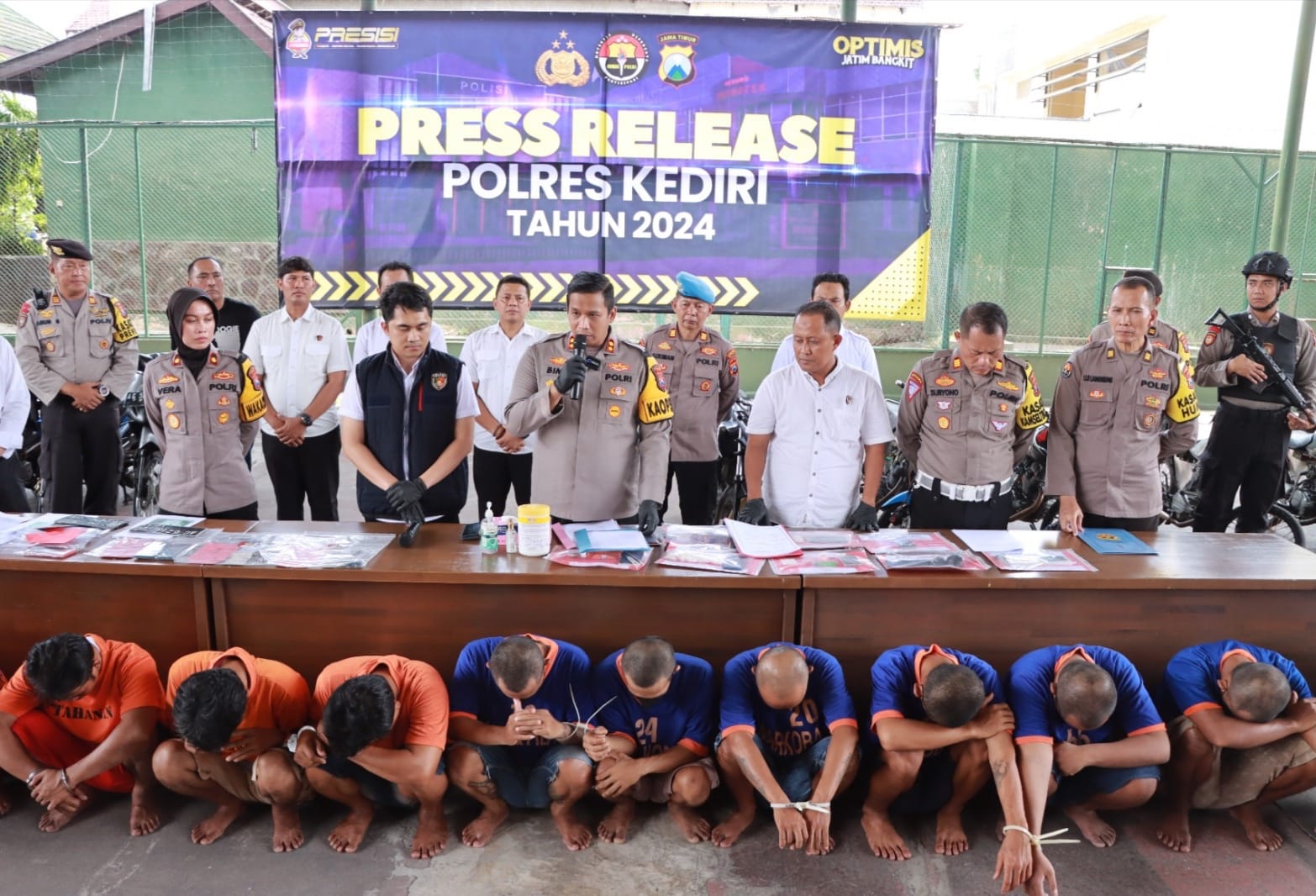Kapolres Kediri AKBP Bimo Ariyanto mengatakan, dari dua perkara curanmor dan penyalahgunaan narkoba itu ada 12 terduga pelaku.