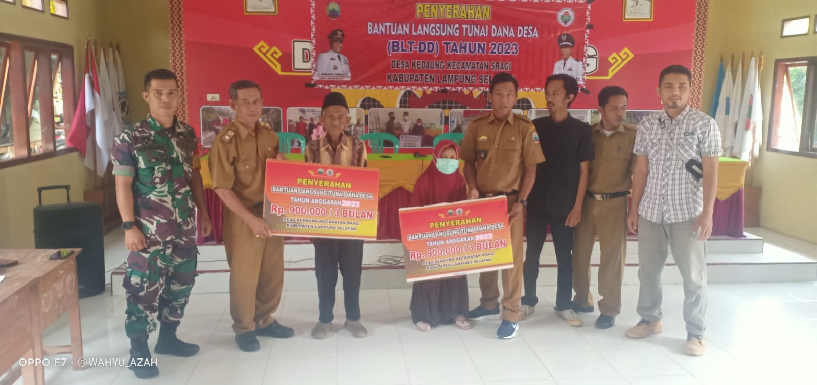 Reportika.co.id || Sragi, Lampung Selatan – Puluhan masyarakat Desa Kedaung, Kecamatan Sragi, Lampung Selatan, terima bantuan langsung tunai (BLT-DD) 2023. Dimana, masing-masing Keluarga Penerima Manfaat (KPM) menerima bantuan uang tunai sebesar Rp900 ribu.