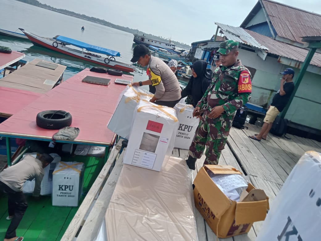 Unsur aparat Babinsa Kodim 1311/Morowali, serta Babinkamtibmas Polres Morowali, ketat dan siaga melakukan pengawalan terhadap pendistribusian logistik pemilu ke sejumlah wilayah di Kabupaten Morowali termasuk ke wilayah kepulauan.