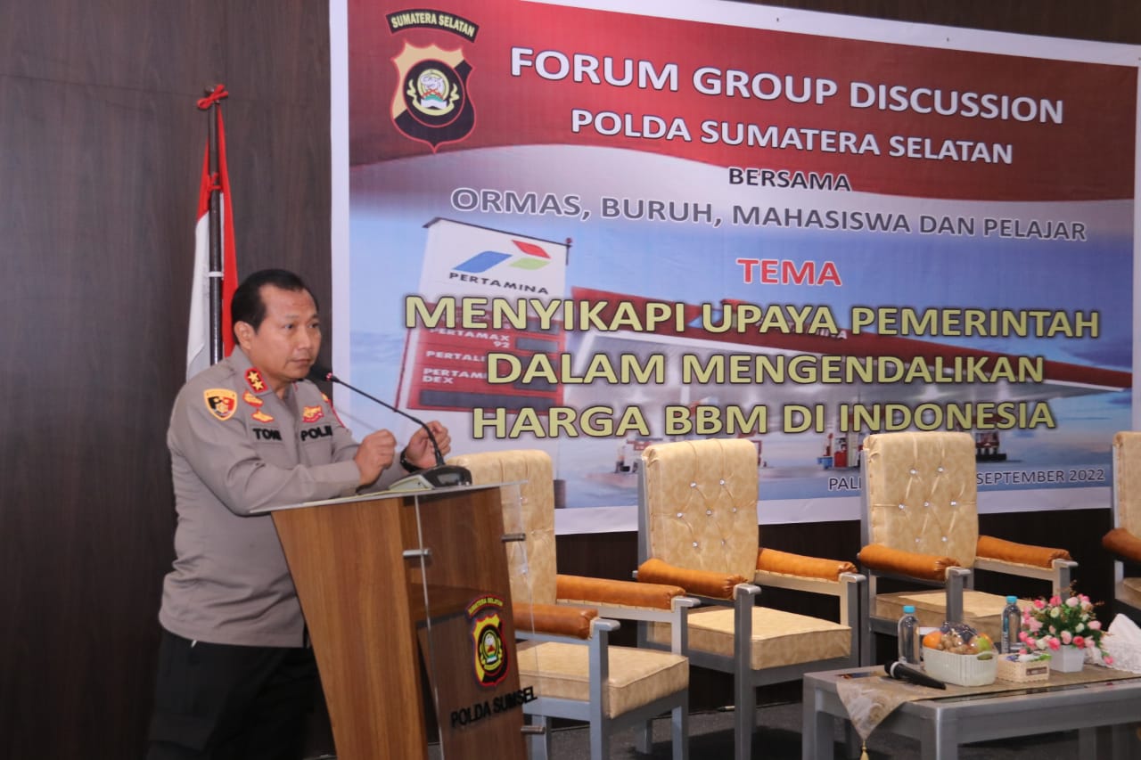 Acara tsb di buka langsung oleh kapolda Sumsel Irjen Pol Drs. Tony harmanto. Dirinya menjelaskan, bahwa kegiatan tersebut guna menyamakan persepsi dalam upaya mengendalikan harga BBM di Indonesia. “Ini merupakan isu yang sangat bagus untuk dibahas, agar kita bisa menyamakan persepsi. Sehingga topik ini bisa diterima dan dimengerti,” ujarnya.