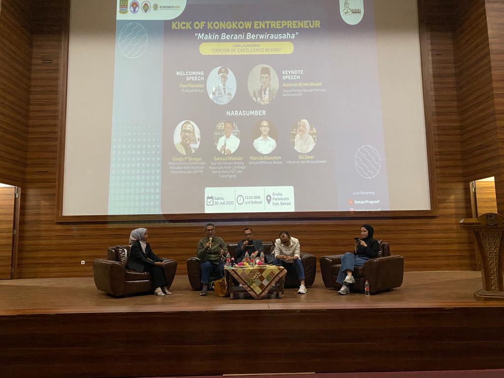 Dalam diskusi tersebut hadir Ginda P Siregar selaku Kepala Bidang Sinkronisasi Kebijakan Kewirausahaan Kemenkop Dan UKM RI, Staf Ahli Menteri Bidang Hubungan Antar Lembaga Kemendesa, PDT dan Transmigrasi, Samsul Widodo, Marcos Nasution Ketua Hipmi Kabupaten Bekasi, dan Sri Dewi Influencer dan Wirausahawan sebagai narasumber.