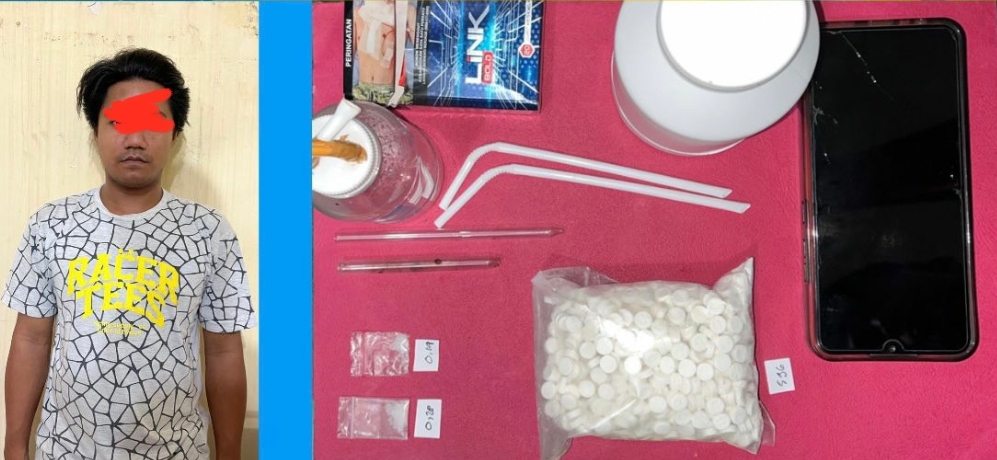 AKP Ipung mengungkapkan, petugas kemudian melakukan upaya paksa dan berhasil mengamankan pelaku beserta barang buktinya yang disita berupa dua paket plastik klip berisi sabu-sabu dengan berat 0,42 gram beserta pembungkusnya dan pil dobel L sebanyak 596 butir.