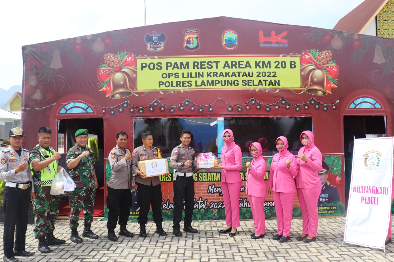 Berikan Support Bingkisan, Ketua Bhayangkari Lamsel Kunjungi Pospam Nataru