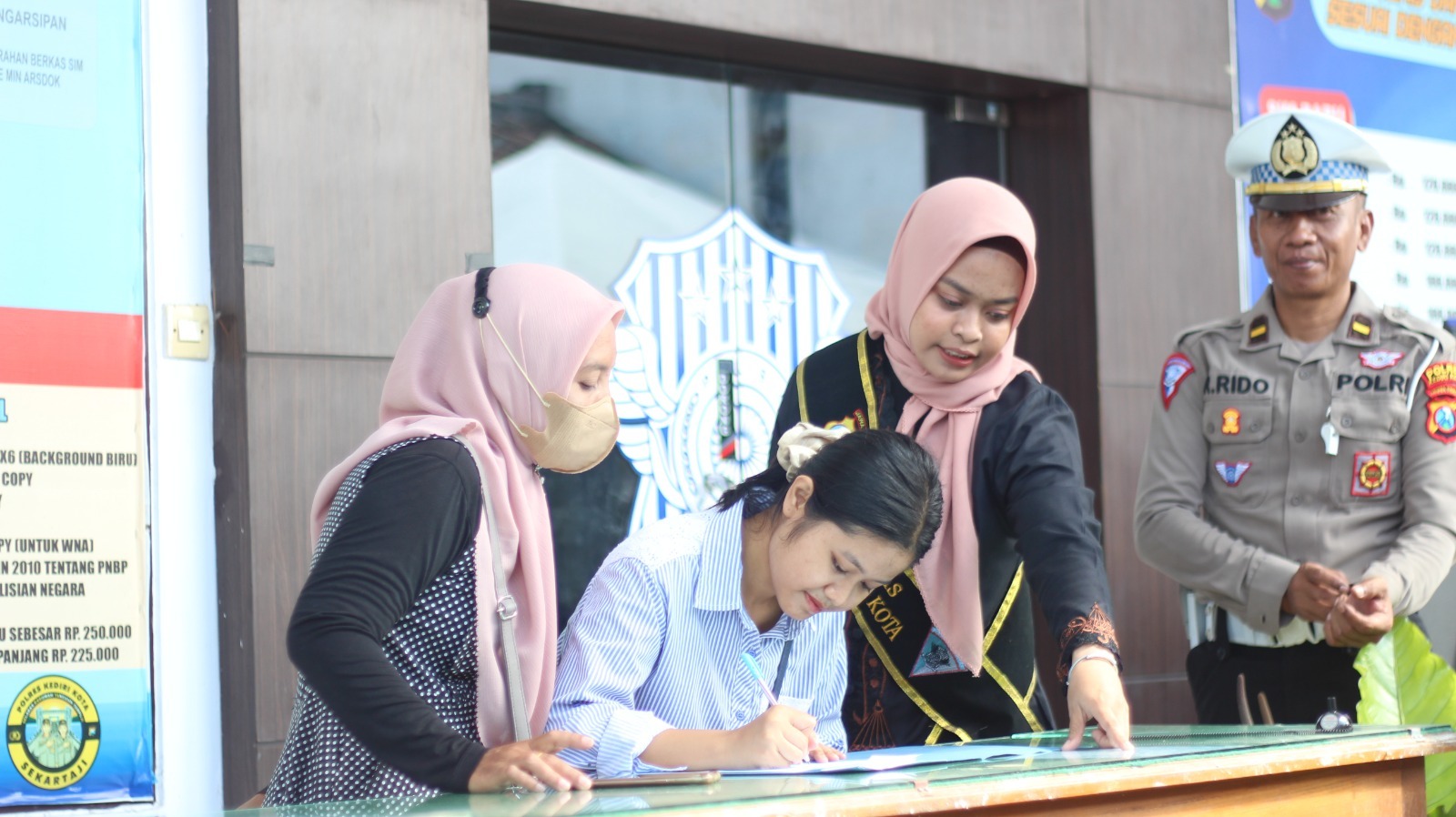 Berpakaian Adat Petugas Satpas SIM Polres Kediri Kota Layani Masyarakat di Hari Kartini