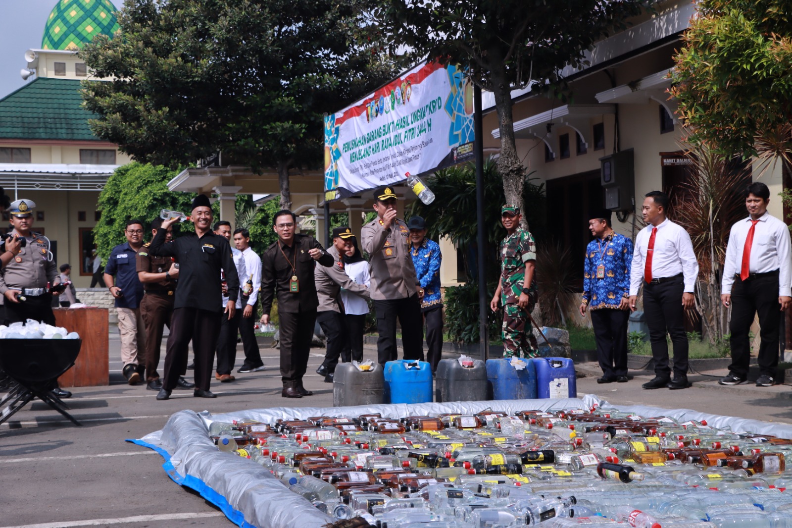 “Kita musnahkan ribuan minuman keras dari berbagai merk,” jelas Kapolres Kediri AKBP Agung Setyo Nugroho, S.I.K.