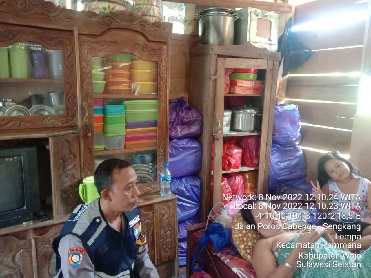 Dalam kunjungannya, Bhabinkamtibmas Polsek Pammana menyampaikan keprihatinannya atas sakit yang diderita warga di desa binaannya dan memberikan motivasi agar tetap semangat menghadapi ujian yang sedang dialami.