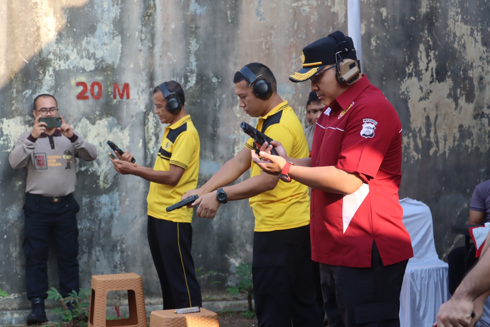 Mereka berkompetisi menggunakan senjata genggam pistol HS 9 organik polri dengan lima butir peluru dan menargetkan sasaran sejauh 20 Km. Perlombaan diawali dengan sesi menembak eksebisi yang dilakukan oleh pejabat utama dan Kapolsek jajaran,