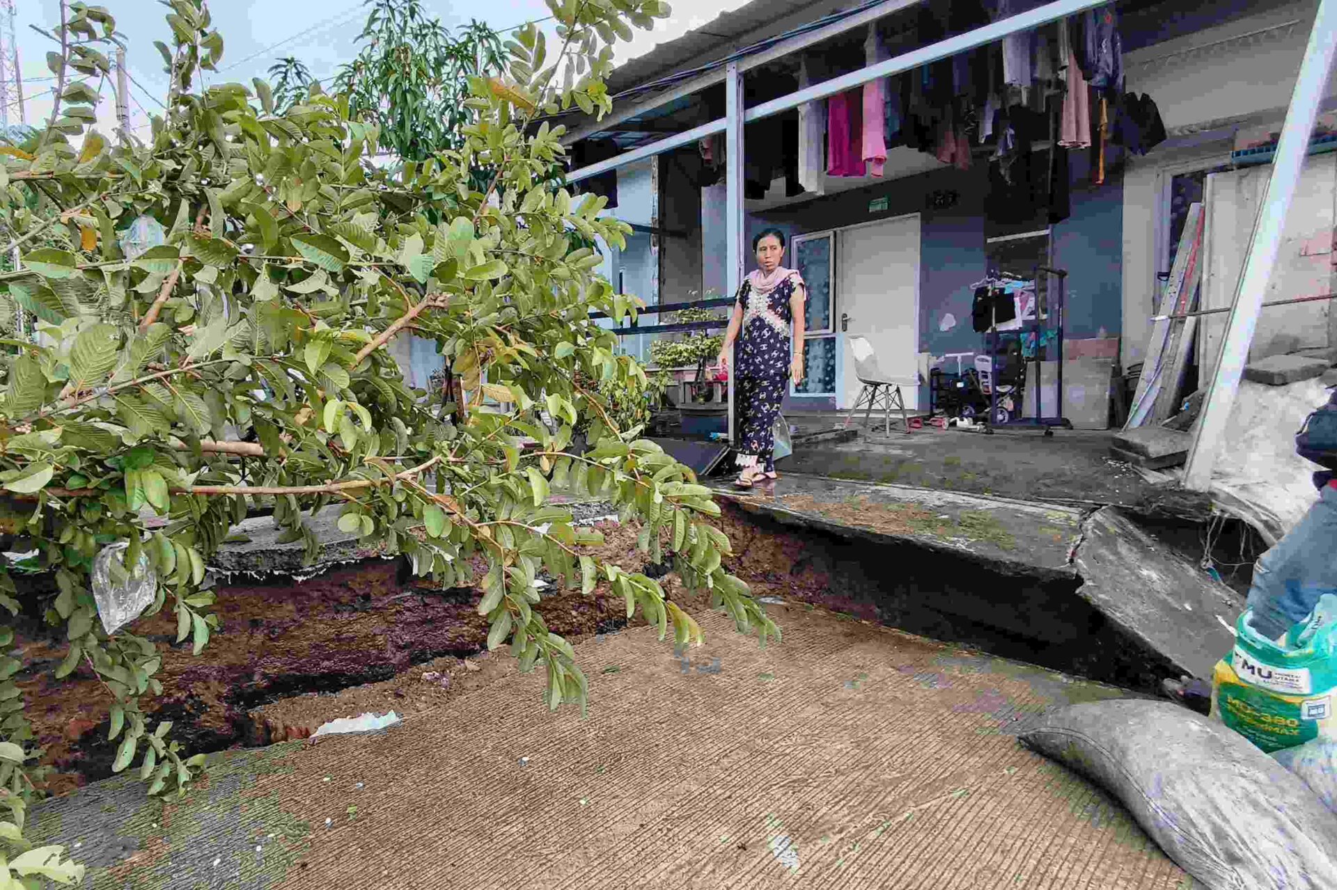 “Kami sudah menyampaikan ke pihak pengembang dan responnya cepat, tetapi pengerjaannya kurang maksimal, tanah hasil pengerukan sungai hanya ditumpuk tanpa penguatan konstruksi permanen. Akibatnya, longsor terjadi bertahap, dari retakan kecil hingga pergeseran tanah seperti sekarang,” ungkapnya.
