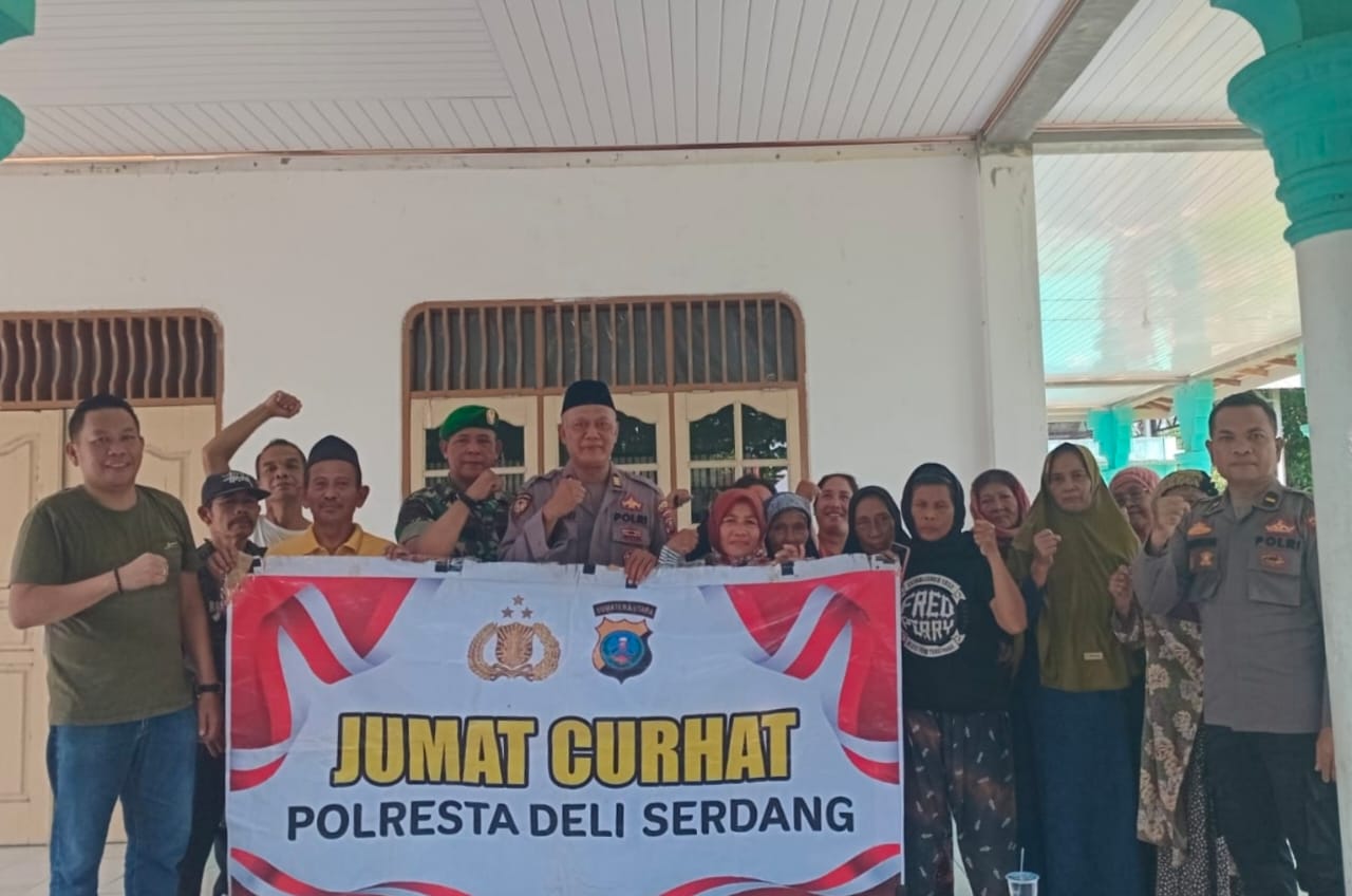 Reportika.co.id || Deli Serdang, Sumut – Polresta Deli Serdang laksanakan kegiatan Jumat Curhat yang dilaksanakan di mesjid Al-Ihsan Desa Emplasmen Kualanamu Kecamatan beringin Kabupaten Deli Serdang. Jumat (06/12/2024)