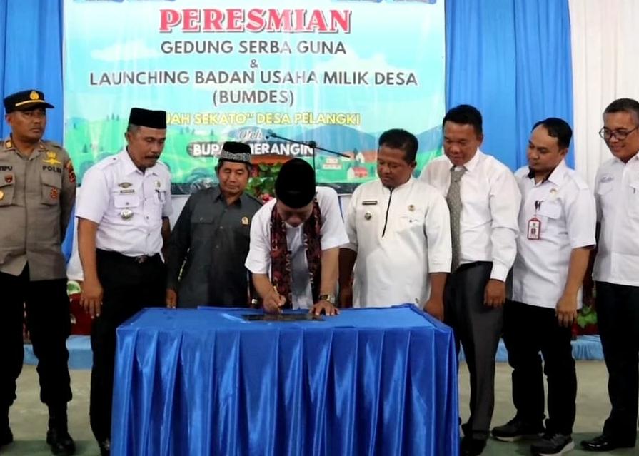 Reportika.co.id || Bupati Merangin H Mashuri meresmikan Gedung Serba Guna Desa Pelangki Kecamatan Batang Masumai, sekaligus melaunching Badan Usaha Milik Desa (BUMDes) Tuah Sekato di Desa Pelangki, Rabu (24/5).