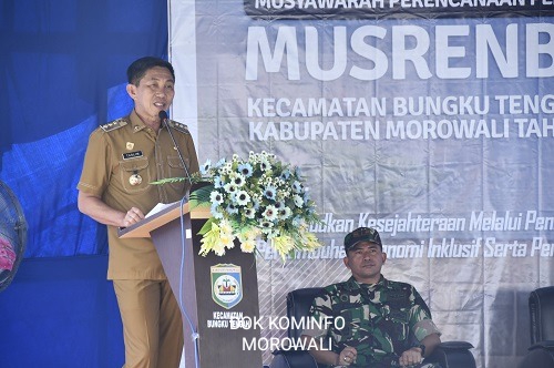 Bupati Morowali Taslim, dalam sambutannya mengatakan Musrenbang yang dilaksanakan Tahun 2023 ini untuk menyusun perencanaan pembangunan tahun 2024. Olehnya, Pemerintah Kecamatan, Desa, BPD, Tokoh Agama, Tokoh Masyarakat dan seluruh lapisan masyarakat berpartisipasi memberikan masukan dalam menyempurnakan perencanaan pembangunan di Kecamatan Bungku Tengah dengan sebaik-baiknya.