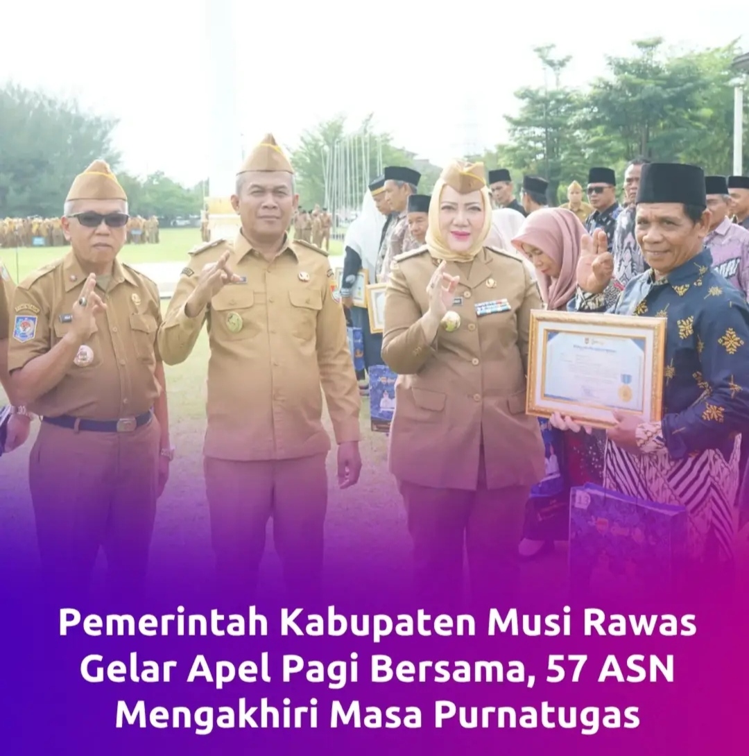 Dalam acara ini, sebanyak 57 Aparatur Sipil Negara (ASN) di lingkungan Pemkab Musi Rawas memasuki masa purna tugas (pensiun). Mereka terdiri dari 15 ASN yang memasuki purna tugas pada Februari 2026, 22 ASN pada Maret 2026, dan 20 ASN pada April 2026.