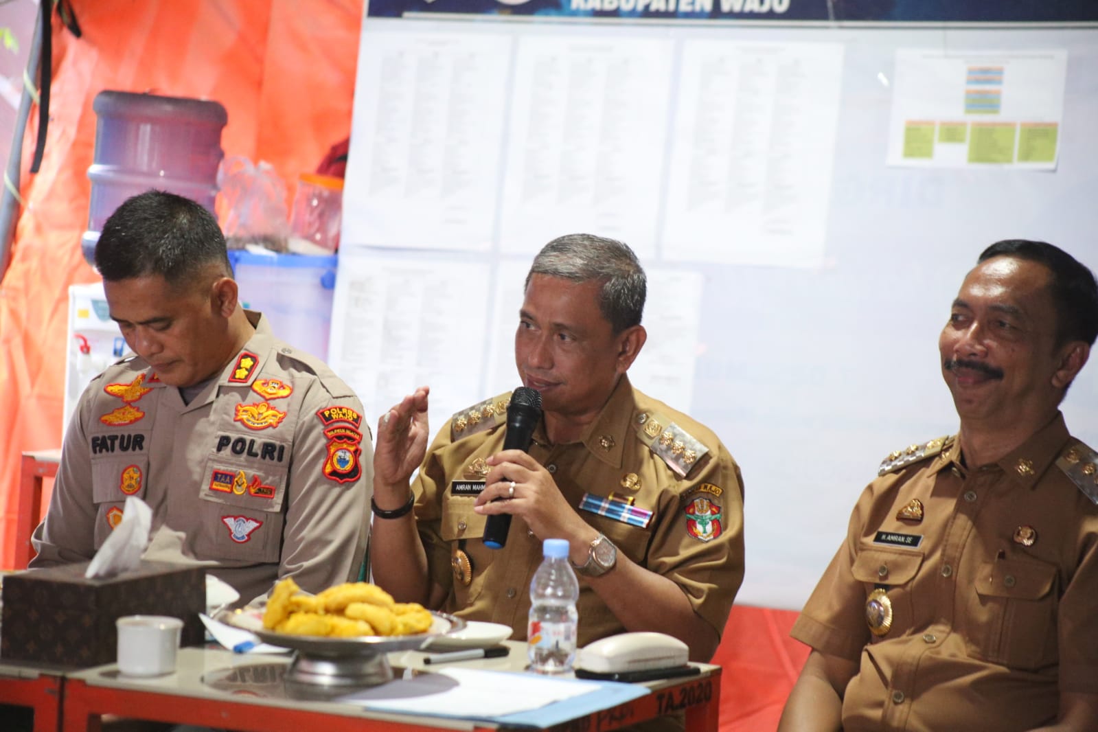 Amran Mahmud di depan unsur Forum Koordinasi Pimpinan Daerah (Forkopimda), Sekretaris Daerah (Sekda) Wajo, Armayani, beserta organisasi perangkat daerah (OPD) terkait, meminta agar bantuan yang diterima dikelola dengan baik dan disesuaikan kebutuhan masyarakat di lapangan.