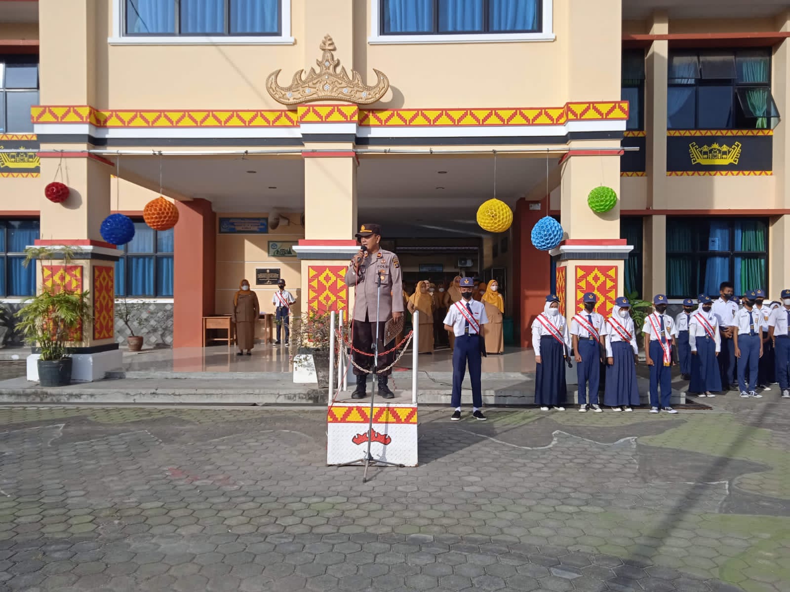 Selain menjadi inspektur upacara, tentunya para Bhabinkamtibmas juga sekaligus memberikan penyuluhan kepada para pelajar terkait kenakalan remaja khususnya aksi tawuran dan geng motor.