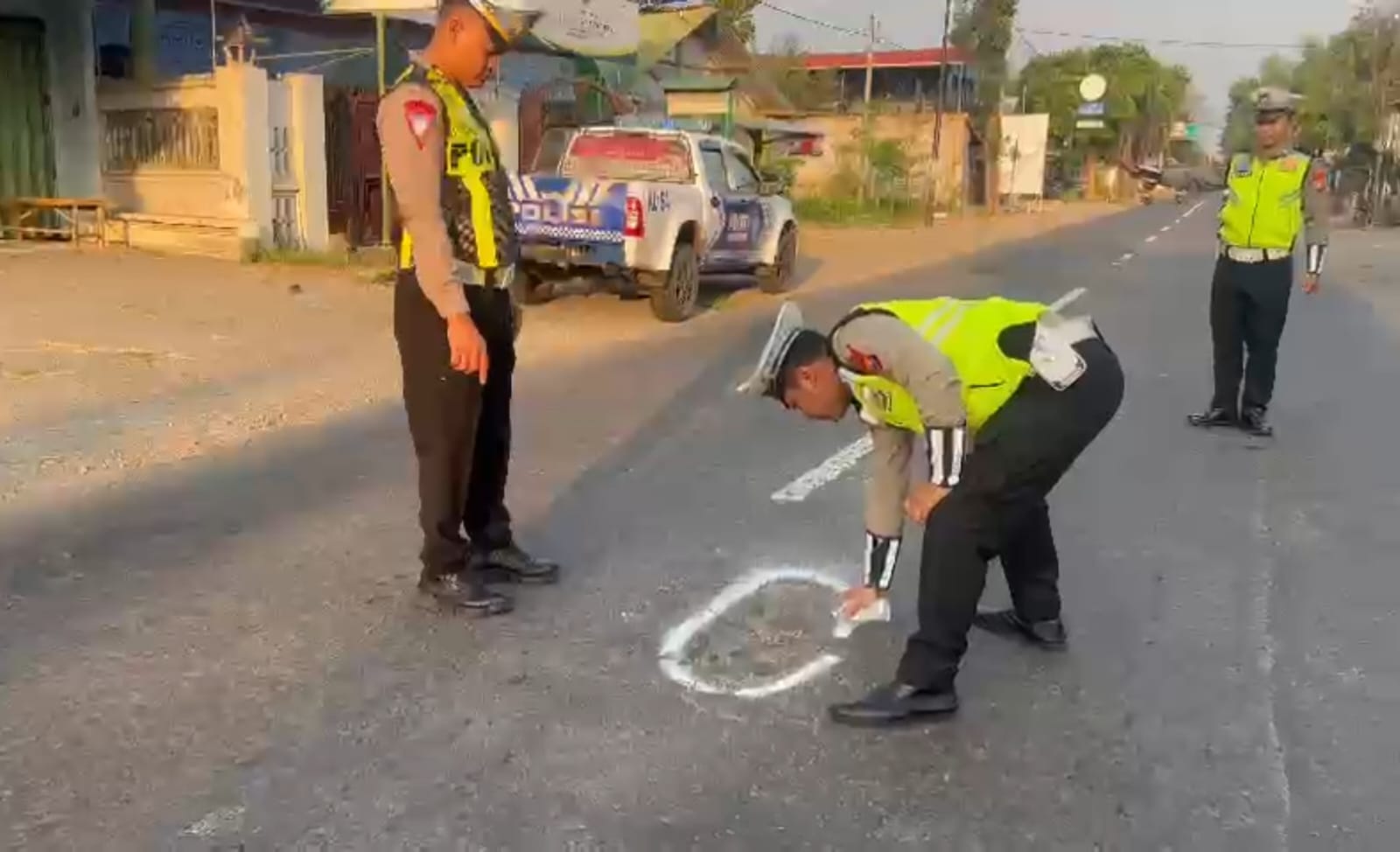 Upaya pemberian tanda dengan memberikan cat putih pada bagian jalan yang rusak diharapkan mampu memerangi angka kecelakaan di wilayah hukum Polres Kediri