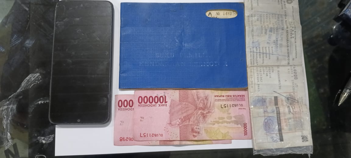 Dalam penangkapan tersebut, polisi menyita sejumlah barang bukti, termasuk satu unit sepeda motor Yamaha RX Spesial, satu BPKB, satu STNK, satu handphone Realme, dan uang tunai Rp200 ribu.