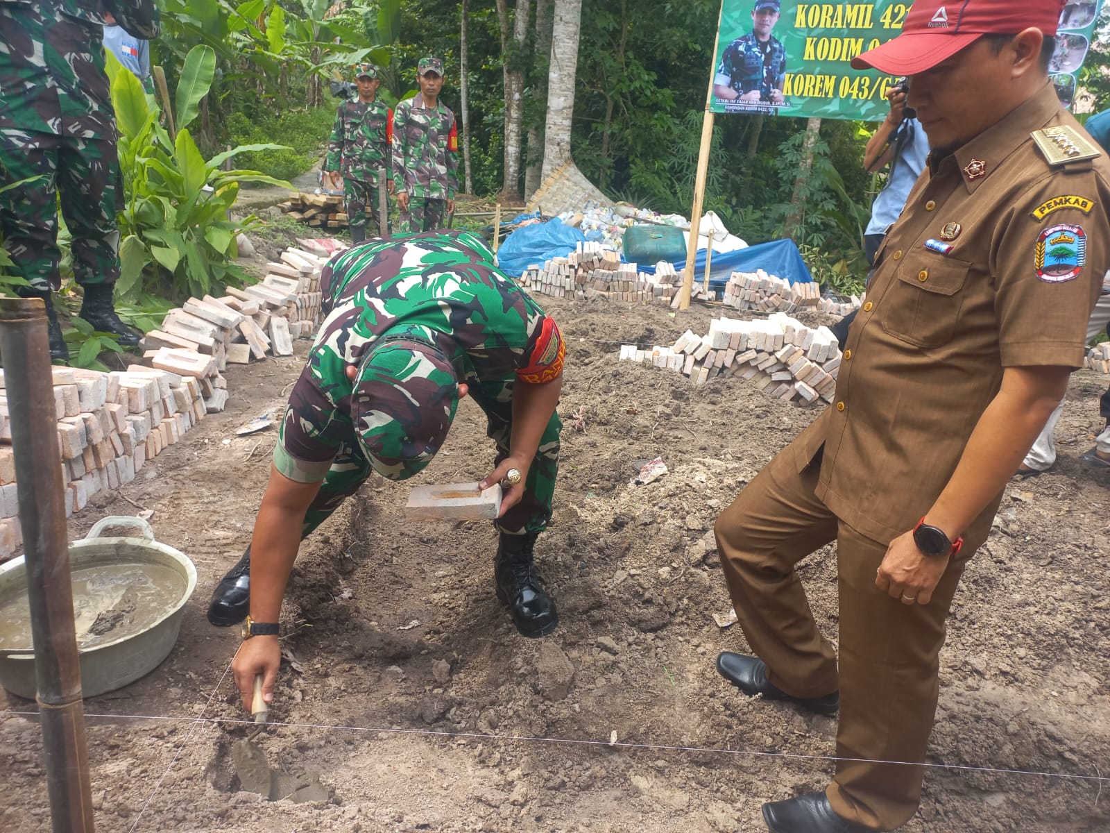 Reportika.co.id || Sragi, Lampung Selatan – Komandan Kodim 0421/Ls Letkol Inf Fajar Akhirudin S.I.P.,M.Si, melaksanakan peletakan batu pertama Bedah Rumah Tidak Layak Huni (RTLH) di Dusun Pamong sari RT 03 RW 07 desa Baktirasa kecamatan Sragi, Kabupaten Lampung Selatan, Selasa (07/02/2023).