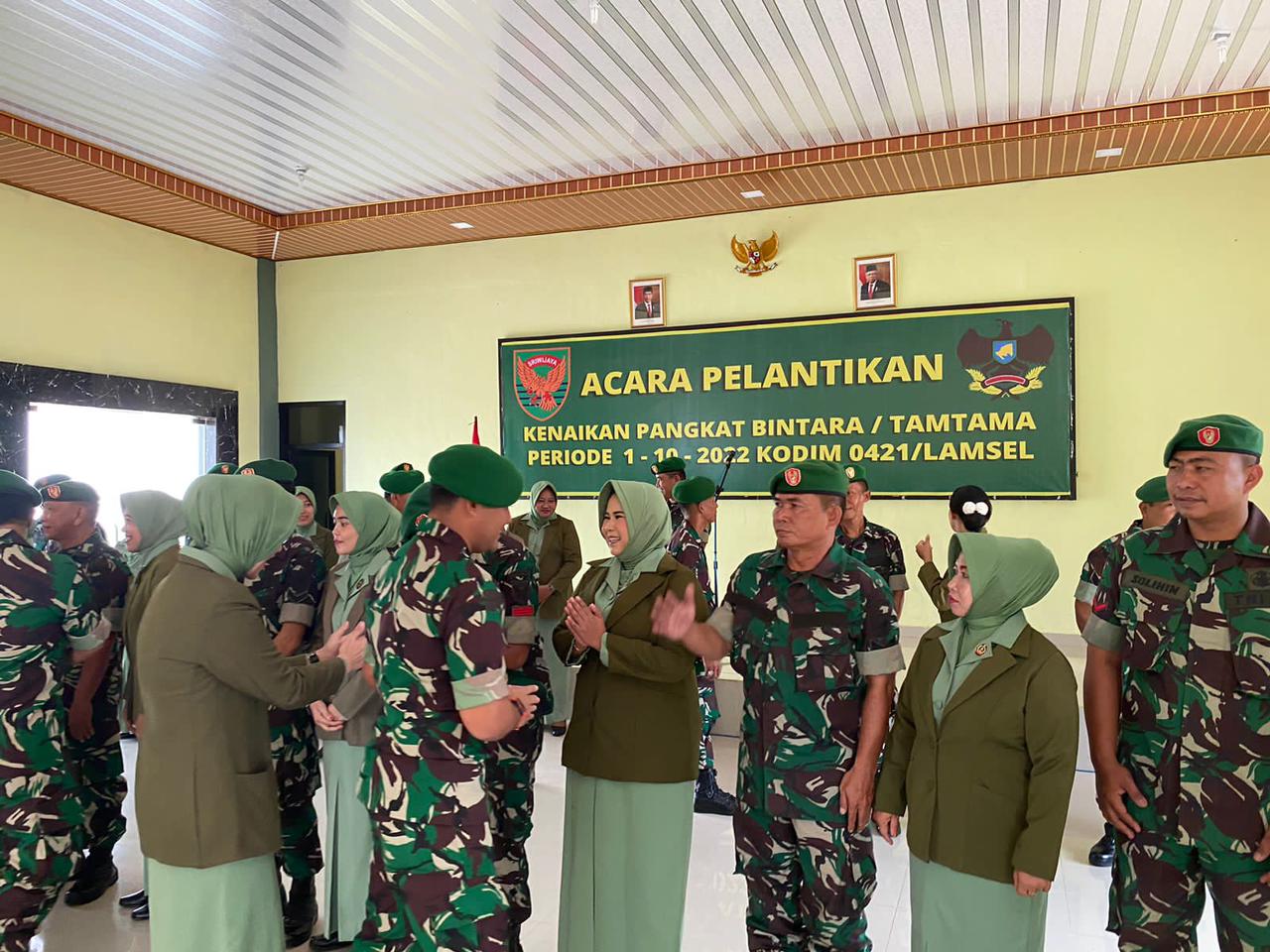 “Bagi anggota yang naik pangkat diperiode 1/10/2022, saya mewakili seluruh prajurit Kodim 0421/LS mengucapkan selamat atas kenaikan pangkat ini, dan sekaligus kepada ibu-ibu Persit KCK saya juga ucapkan selamat atas suaminya yang naik pangkat, pesan saya tetap rukun dan menjaga keharmonisan dalam keluarga”.tutupnya.