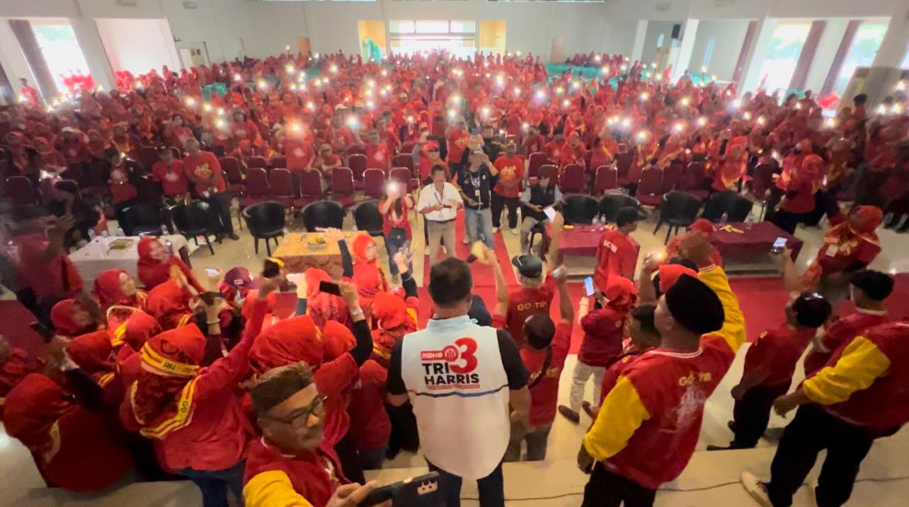 Reportika.co.id || Kota Bekasi – Relawan Go-Tri dari tiga kelurahan di Bekasi, yaitu Mustikasari, Padurenan, dan Cimuning, mendeklarasikan dukungan penuh kepada pasangan calon Wali Kota dan Wakil Wali Kota Bekasi, Tri Adhianto dan Abdul Harris Bobihoe, yang dikenal dengan sebutan “RIDHO” (Nomor 3). Deklarasi ini berlangsung meriah di Mustika Convention Hall, Mustika Jaya, dihadiri oleh sekitar 2.200 pendukung pada Sabtu (19/10).