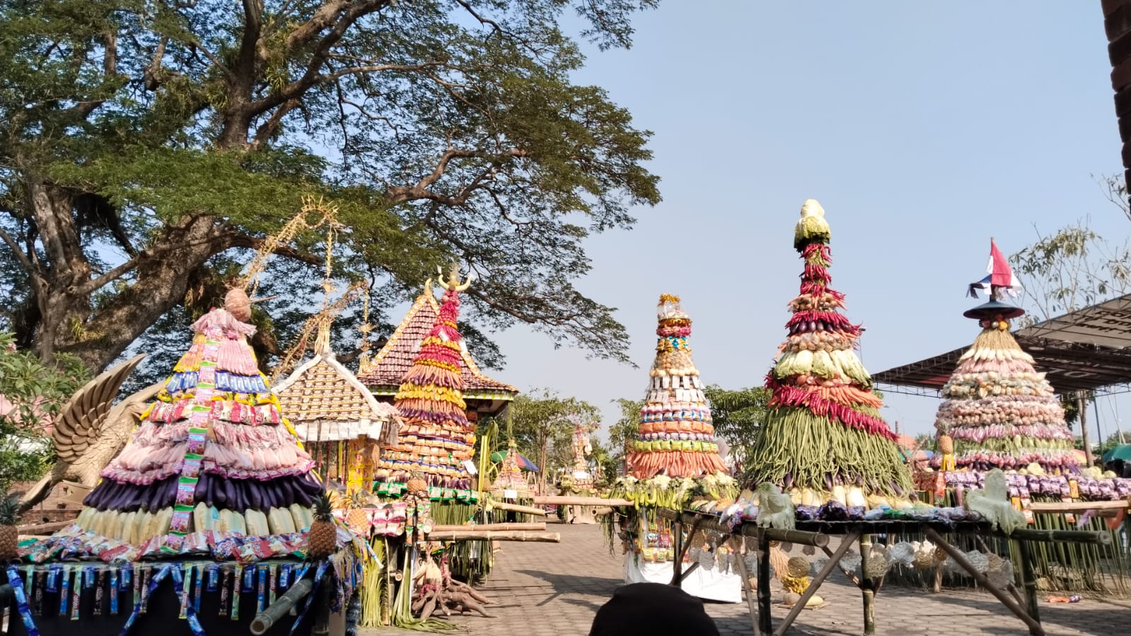 Parade hasil bumi, menghiasi acara sedekah bumi di Desa Dapet, yang disambut antusias masyarakat.