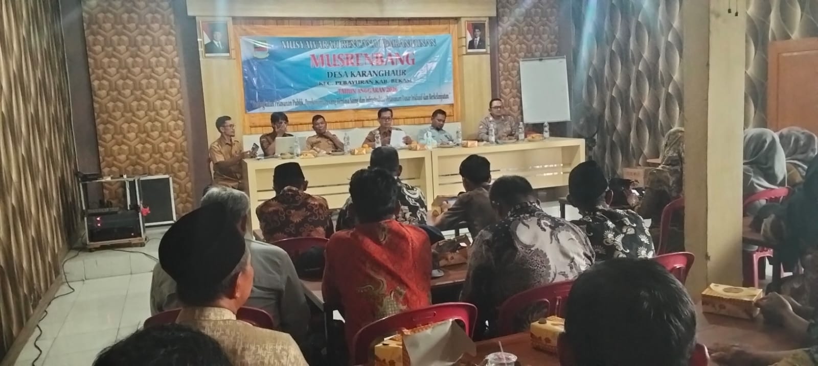Reportika.co.id || Kabupaten Bekasi – Kepala Desa Karanghaur, Kecamatan Pebayuran Kabupaten Bekasi, melaksanakan Musyawarah Rencana Pembangunan Desa (MUSREMBANGDES) Tahun 2025.