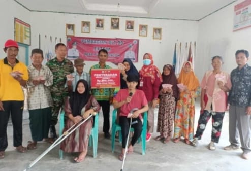Penyaluran BLT DD dihadir Camat Palas Rosalina, Babinsa 421-08/pls, Kepala Desa Nuryanto, pendamping desa dan seluruh masyarakat yang memperoleh bantuan langsung tunai di bale desa setempat.