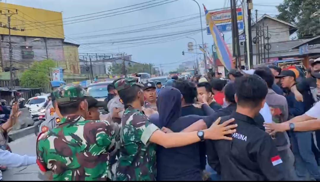 Adu mulut antara kedua belah pihak pun tidak dapat dielakkan. Aksi saling dorong pun terjadi, rekan TNI dan polisi lainnya berusaha melerainya agar tetap kondusif