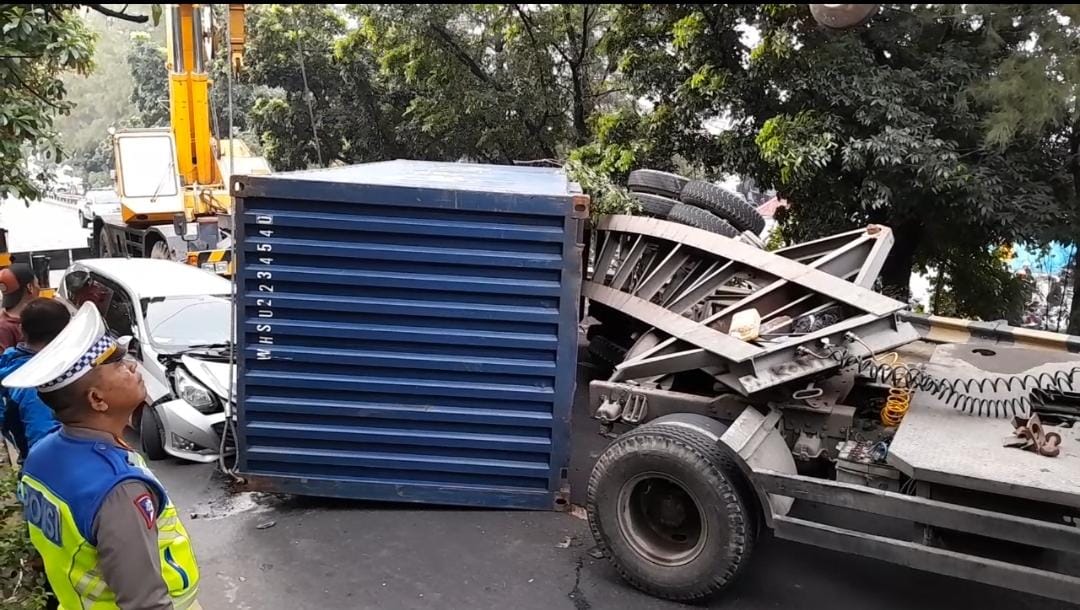 “Sehingga muatan peti kemas roboh ke samping kanan bodi peti kemas membentur mobil Daihatsu Sigra yang bersaman arah. Dalam waktu bersamaan membentur mobil Daihatsu Gran Max yang tidak dikenal identitasnya,” imbuhnya.