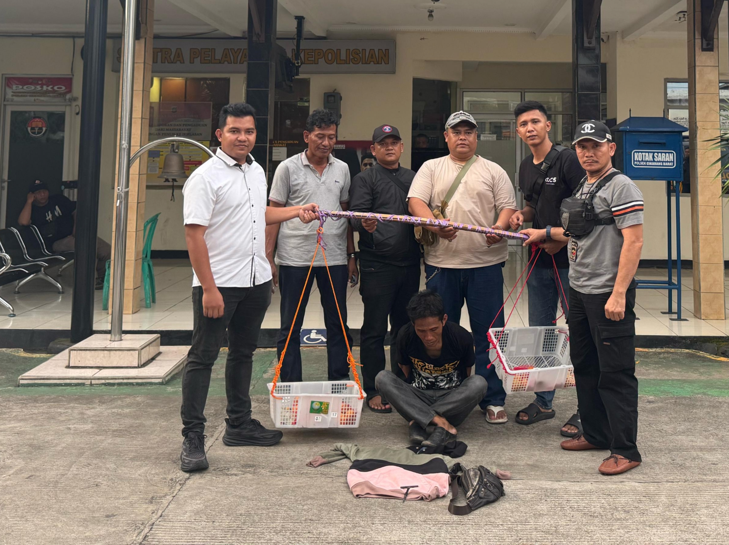 Setelah diberhentikan oleh korbannya, tak lama anggota tim dari unit Reskrim Polsek Cikarang Barat tiba di lokasi dan langsung mengamankan pelaku. Joko menyebut, saat diringkus pelaku masih mengenakan pakaian yang sama saat melancarkan aksinya pada Jumat (18/4/2025) yang lalu.