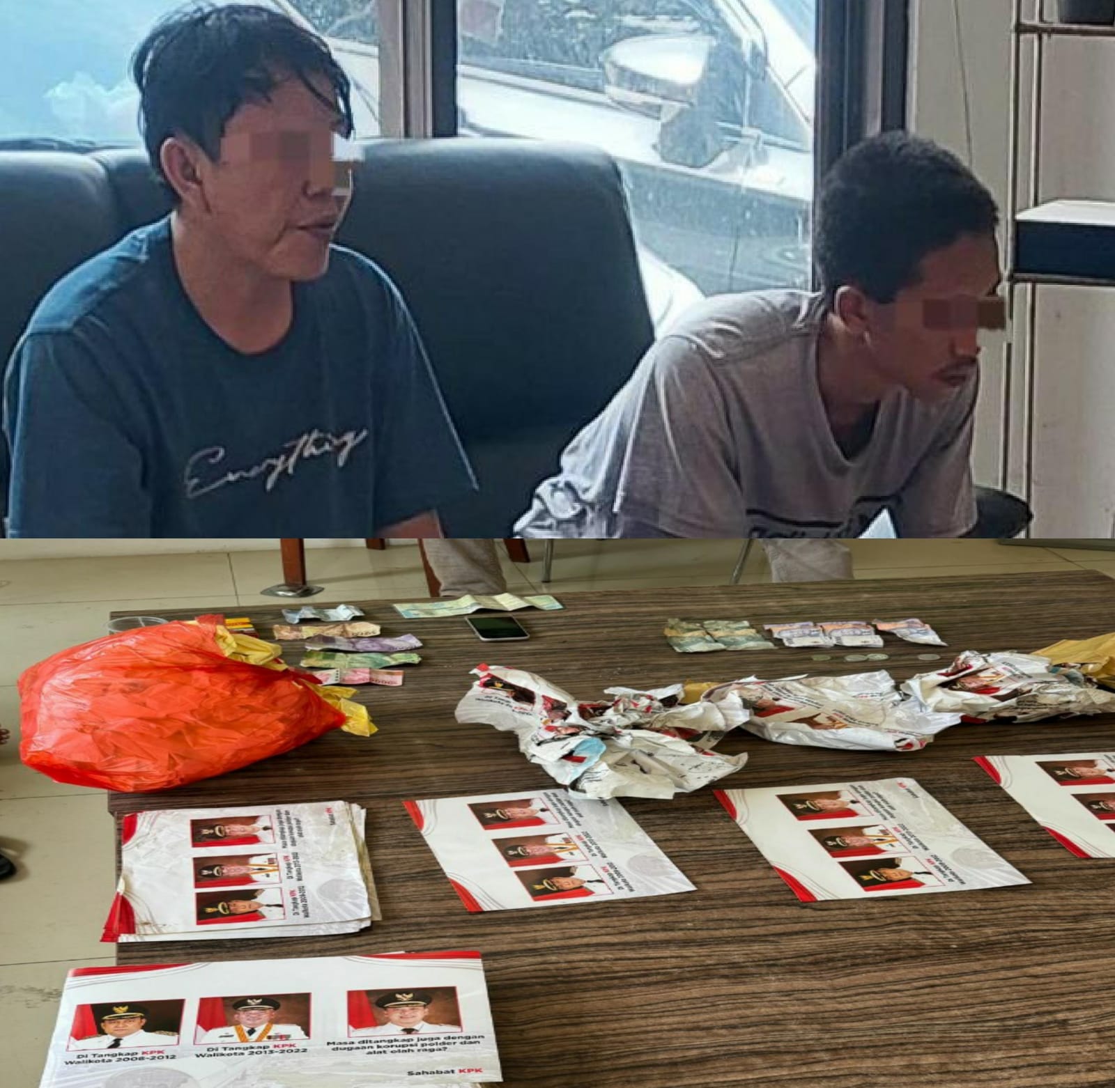 Diketahui keduanya tertangkap tangan oleh warga, M (Mansur) dan G (Gunawan), warga Jati Mulya, Tambun Selatan, digelandang warga ke Bawaslu Kota Bekasi, Mnggu pagi.