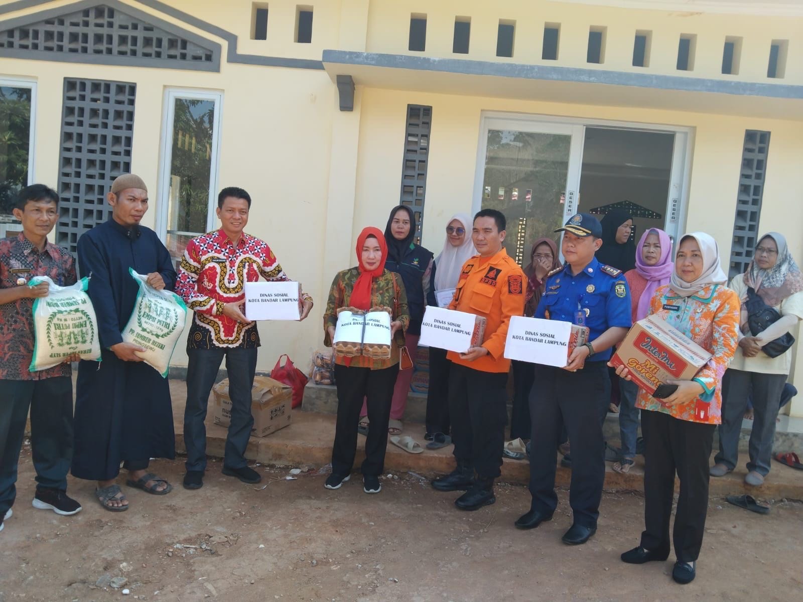 Aklim Sahadi menyerahkan bantuan sembako di dampingi Kepala Damkar Anthoni Irawan dan Kepala Pelaksana (Kalak) BPBD di lokasi kebakaran. Pemkot Bandarlampung akan memberikan bantuan usai usulan dari kelurahan dan kecamatan, katanya.
