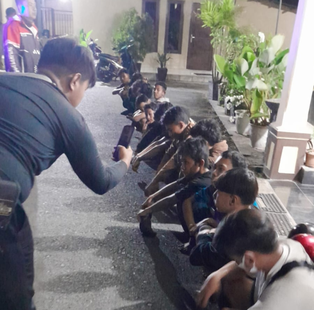 “Saat patroli, tim 1 mendapati belasan orang berkumpul dekat Pom Bensin, kami datangi, untuk mencegah hal hal yang tidak diinginkan, belasan orang kami amankan ke Mako Polsek Sukarame,” ucap Kompol Warsito.